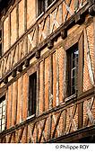 MAISON A PANS DE BOIS ET BRICOUS, PLACE DU DOCTEUR ANDRE CAYLA, DANS LE QUARTIER HISTORIQUE, VILLE DE BERGERAC, PERIGORD POURPRE, DORDOGNE, AQUITAINE, FRANCE [ autorisation necessaire ]