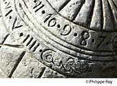 CADRAN SOLAIRE MULTIPLE, 18 EME SIECLE, DANS LE CLOITRE DE L' ANCIENNE ABBAYE SAINT GERMAIN , CENTRE HISTORIQUE DE LA VIEILLE VILLE D' AUXERRE, YONNE, BOURGOGNE, FRANCE.