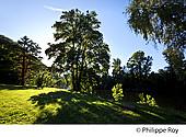 REPOS DE PROMENEUR DANS LE PARC DU CHATEAU DE VASSIVIERE? ET LE BERGER DE SAINT GENEST, SCULPTURE EN PIERRE DE PIERRE DIGAN, 1983, ET LE CHATEAU DE VASSIVIERE, CENTRE INTERNATIONAL D' ART ET DU PAYSAGE, PARC DE L' ILE DE VASSIVIERE, LAC DE...