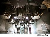 CUVES INOX SUSPENDUES ET CAGE DU MONTE CHARGE, CUVIER DU CHATEAU LA FLEUR SAINT GEORGES CONCU PAR L'ATELIER BPM, LA FLEUR DE BOUARD, AOC LALANDE DE POMEROL, VINS DE BORDEAUX, NEAC, GIRONDE, AQUITAINE, FRANCE [ autorisation necessaire ]