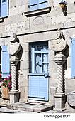 SCULPTURE DE NAPOLEON ET DE LA FEMME NUE AU CHAPEAU SUR LES PILIERS DU PORTAIL DE LA SECONDE MAISON DU SCULPTEUR, TAILLEUR DE PIERRE, FRANCOIS MICHAUD, 19 EME SIECLE, MAISON TRADITIONNELLE CREUSOISE EN GRANIT, MACON CREUSOIS, HAMEAU DE...