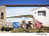 MUR PEINT EN TROMPE-L'OEIL, MAISON TRADITIONNELLE VENDEENNE AU VILLAGE DE L'HERBAUDIERE, ILE DE NOIRMOUTIER, COTE ATLANTIQUE, VENDEE (85), PAYS DE LOIRE, FRANCE [pas d'autorisation nécessaire]
