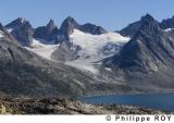 PAYSAGE, TINITEQILAAQ, FJORD IKASAGTIWAQ , REGION ANGMASSALIK, COTE EST, GROENLAND - Glacier du massif Niniartivaraq près de Tiniteqilaaq et le fjord Ikasagtivaq. Saison été. - Tiniteqilaaq - Angmassalik - GL - Groenland - [pas d'autorisation...