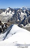 ALPINISTES REMONTANT L'ARETE DE LA VALLEE BLANCHE, AVEC EN FOND LE GLACIER DE TALEFRE ET LE TRIOLET (3870 METRES), VUS DEPUIS L'AIGUILLE DU MIDI, MASSIF DU MONT-BLANC, CHAMONIX, HAUTE-SAVOIE (74), RHONE-ALPES, FRANCE [pas d'autorisation nécessaire]