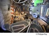 INTERIEUR DU VEHICULE SPATIAL SOYOUZ ACCROCHE A LA STATION SPATIALE RUSSE MIR, JARDINS DE LA CITE DE L' ESPACE, VILLE DE TOULOUSE, HAUTE GARONNE, MIDI PYRENEES, OCCITANIE, FRANCE.