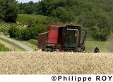 MOISSON, BLE, CEREALICULTURE, AGRICULTURE , GIRONDE, AQUITAINE, FRANCE - Moisson de blé - Moisonneuse batteuse dans champs de blé - Saillans - 33 - Gironde - [Pas d'autorisation nécessaire]