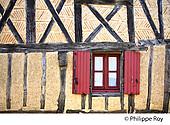 MAISON A PANS DE BOIS DU VILLAGE LABASTIDE D' ARMAGNAC, PAYS D' ARMAGNAC, LANDES.