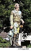 STATUE EN PIERRE DE CYRANO, 1977, SCULPTEUR JEAN VAROQUEAUX , RUE DE LA MIRPE, CENTRE HISTORIQUE DE LA VILLE DE BERGERAC, VIA LEMOVICENSIS, CHEMINS DE SAINT JACQUES DE COMPOSTELLE, VALLEE DE LA DORDOGNE, PERIGORD POURPRE, DORDOGNE, NOUVELLE...