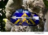 PLAQUE FUNERAIRE CORDIFORME EMAILLEE, D' UNE SEPULTURE PROTESTANTE DANS LE JARDIN D' UNE MAISON CEVENOLE, HAMEAU DE FILNIELS, COMMUNE DE PONT DE MONTVERT, MONT LOZERE, MASSIF DES CEVENNES , PARC NATIONAL DES CEVENNES, GEVAUDAN, LOZERE, ...