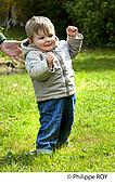 PETIT GARCON DE UN AN FAISANT SES PREMIERS PAS DANS LE JARDIN