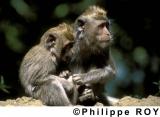 SINGE, MONASTERE AU MONT POPA, KANZATKON, MANDALAY, MYANMAR, BIRMANIE - Religion dans la région de de Mandalay - Sanctuaire bouddhiste du Mont Popa - Les singes du monastère, mère protégeant son petit - Kanzatkon - MM - Myanmar ...