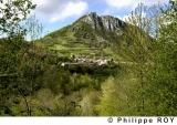 CHATEAU CATHARE, ROQUEFIXADE, PLANTAUREL, ARIEGE, PYRENEES, MIDI PYRENEES, FRANCE. - Le château cathare de Roquefixade (13ème siècle) sur son piton rocheux "pog" et le village. - Roquefixade - 09 - Ariège - [pas d'autorisation nécessaire]