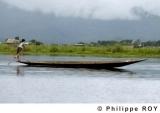 PIROGUE SUR LE LAC INLE, YAUNGHWE, PAYS SHAN, MYANMAR ( BIRMANIE) - Villageois se déplaçant dans sa pirogue à perche sur le lac Inlé. Ethnie Intha. - Yaunghwe - MM - Myanmar - [pas d'autorisation nécessaire]