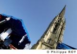 VILLE DE BORDEAUX . - Quartier Saint Michel . - Le clocher ( flèche ) de l' église Saint Michel , style gothique flamboyant ( 15 é s.) et le marché de St Michel . - Bordeaux - 33 - Gironde. - [Pas d'autorisation nécessaire]