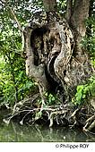 TRONC DE FRESNE TETARD LE LONG DU CANAL DU VIEUX BEJOU DANS LE MARAIS HUMIDE , LES ECLUSES DE BAZOIN, COMMUNE DE LA RONDE, POLE NATURE DU PARC NATUREL REGIONAL DU MARAIS POITEVIN, CHARENTE MARITIME , POITOU CHARENTES, NOUVELLE AQUITAINE,...