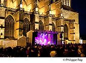 CONCERT DE JAZZ , FESTIVAL MUSIQUES AU MUSEE, SUR LE PARVIS DE LA CATHEDRALE SAINT ETIENNE, ET LE PORTAIL SAINT JEAN , STYLE GOTHIQUE FLAMBOYANT, DE NUIT, QUARTIER DE LA CITE, CENTRE HISTORIQUE DE LA VILLE DE LIMOGES, VALLEE DE LA VIENNE,...