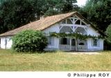 MAISON, FERME LANDAISE, MUSSE , MARQUEZE, SABRES, PARC REGIONNAL, LANDES, GASCOGNE, AQUITAINE, FRANCE. - Maison d' une ferme landaise traditionnelle dans l' Ecomusée de Marquèze. - Sabres - 40 - Landes - [autorisation nécessaire]